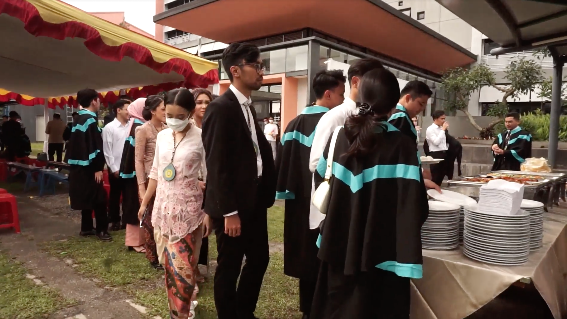 Kemudian, sesampainya wisudawan di Rooftop Gedung 10, para wisudawan disambut oleh Pengurus Himpunan Mahasiswa Program Studi Manajemen (HMPSM) angkatan 2019 dengan pemberian bunga satu-satu serta ucapan selamat, yang setelah itu dilanjutkan dengan prosesi registrasi ulang wisudawan kepada panitia. Setelah selesai, wisudawan dipersilahkan untuk duduk. Acara dibuka dengan kata sambutan oleh Ketua HMPSM 2022 yaitu Cornelius Kenneth Susanto. Dilanjutkan dengan kata sambutan oleh Ketua Pelaksana Penghargaan Wisudawan 2022 yaitu Haifa Azzahra. Dan kata sambutan diakhiri oleh para Ketua Angkatan 2015, 2016, 2017, dan 2018 melalui video pre-record.